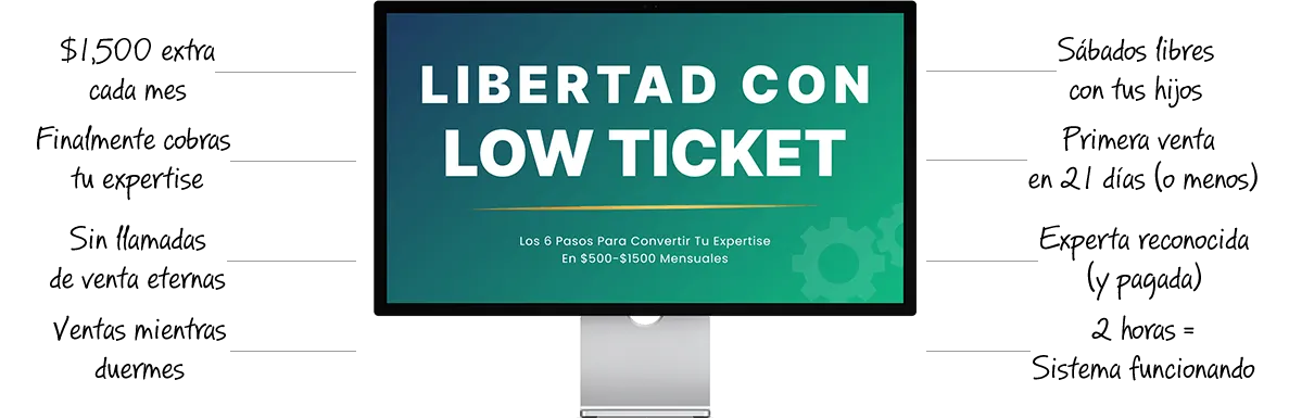 LIBERTAD CON LOW TICKET es para mujeres profesionales de 35-42 años con 8-15 años de experiencia comprobada en su campo, que constantemente son consultados por colegas para consejos, que tienen conocimiento valioso pero no saben cómo monetizarlo digitalmente, y que buscan generar $500-1,500 mensuales extra sin comprometer tiempo familiar. Si ese es tu caso, este sistema fue creado específicamente para ti. NO es para principiantes sin experiencia o personas buscando "hacerse ricas rápido".